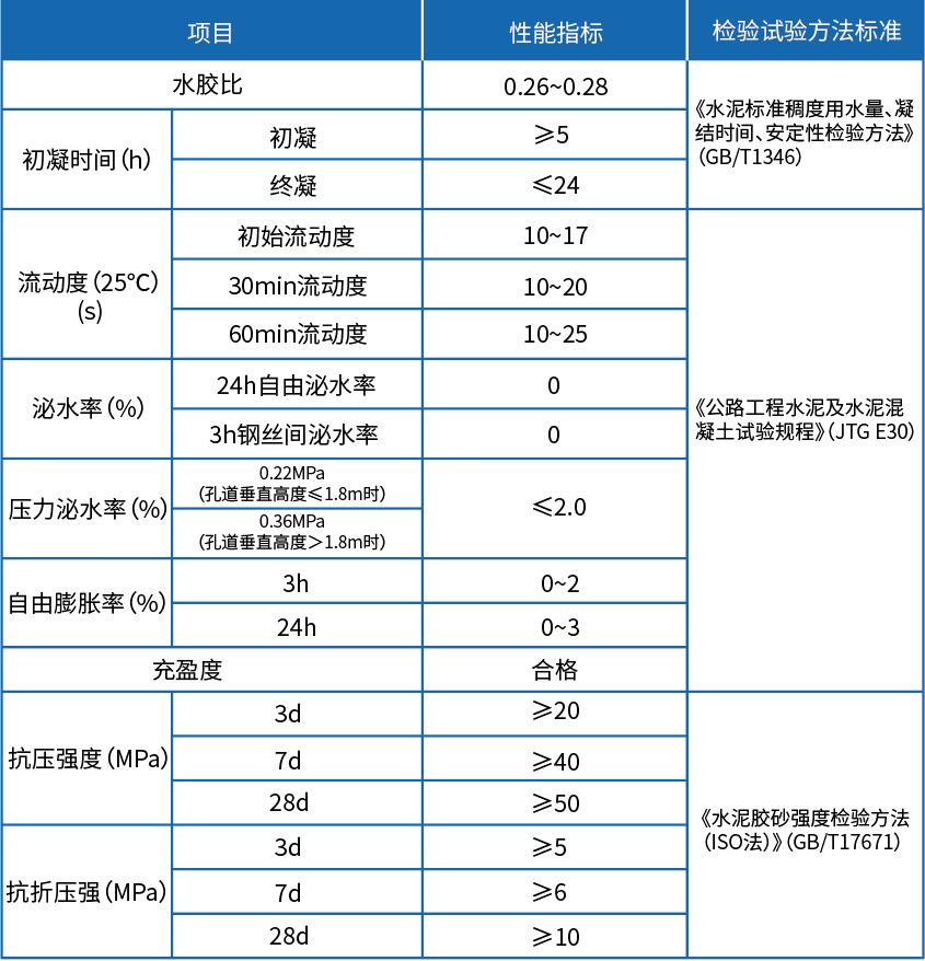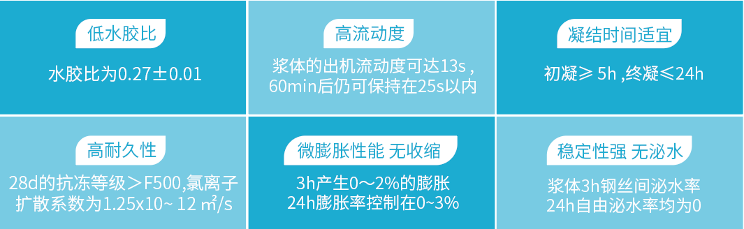 適用於各種梁體後張法預應力孔道壓漿,也可以用於設備基礎、錨杆、道釘等構件錨固以及混凝土疏鬆、孔洞等缺陷修補。